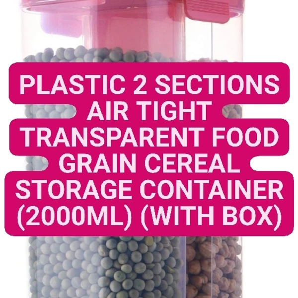 PLASTIC 2 SECTIONS AIR TIGHT TRANSPARENT FOOD GRAIN CEREAL STORAGE CONTAINER (2000ML) (WITH BOX) 189/-